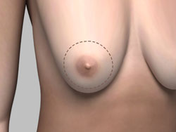 Увеличение груди через периареолярный доступ (разрез по краю ареолы)