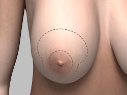 Увеличение груди через периареолярный доступ (разрез по краю ареолы)
